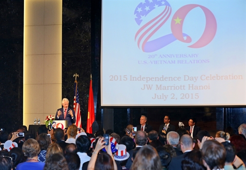 | Cérémonie de célébration du 20e anniversaire de l'établissement des relations diplomatiques Vietnam - États-Unis, le 2 juillet à Hanoi. |
