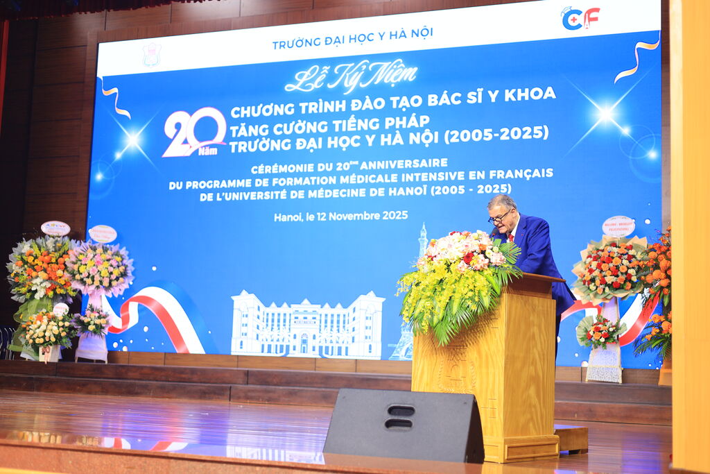 Le Professeur - Docteur Nguyên Huu Tu, recteur de l’université, a souligné lors de la cérémonie : "À cette époque, nul ne pouvait imaginer que, deux décennies plus tard, ce programme deviendrait un symbole de la réussite de la coopération éducative et médicale franco-vietnamienne, un véritable pont entre les savoirs, les cultures et les cœurs".