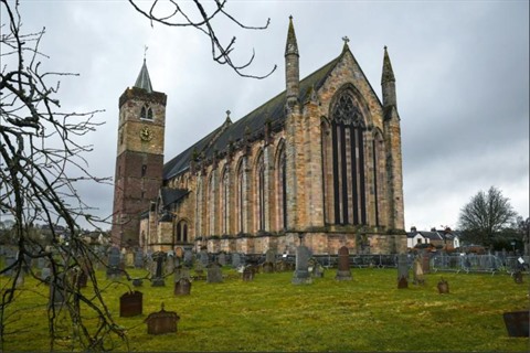 | La cathérale de Dunblane (Écosse), où est commémorée la pire tuerie de masse du Royaume-Uni dans une école en 1996, le 12 mars 2021. |