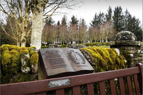 | Un mémorial portant les noms des victimes de la fusillade en 1996 au cimetière de Dunblane, le 13 mars 2021. |