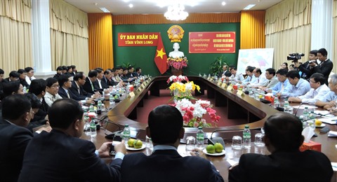 | Séance de travail entre des autorités de Vinh Long et de BanTeay Meanchey, le 20 décembre. |
