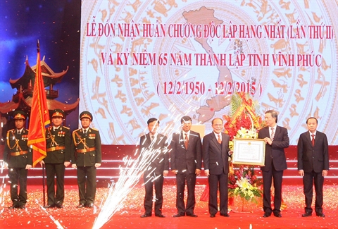 | Le président de l'AN Nguyên Sinh Hùng a remis l'Ordre de l'Indépendance de première catégorie à la province de Vinh Phuc. |