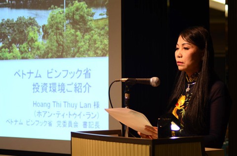 | La secrétaire du Comité du Parti de Vinh Phuc, Hoàng Thi Thuy Lan, prenant la parole lors du séminaire le 28 mars à Tokyo. |