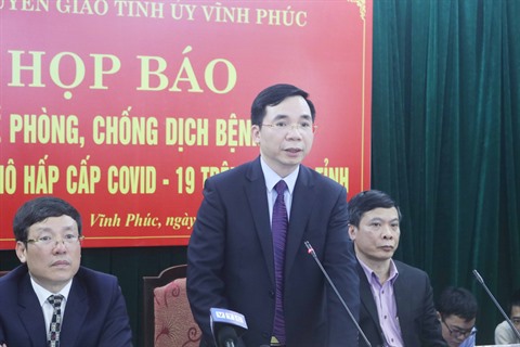 Lors de la conférence de presse sur le travail de prévention et de lutte contre le Covid-19 dans la province de Vinh Phuc, les représentants du Comité populaire provincial et des organes compétents locaux ont répondu à de nombreuses questions concernant les soins, l'approvisionnement alimentaire, l'isolement, la fourniture de masques et des produits de lavage des mains, l’interdiction des rassemblements de personnes...