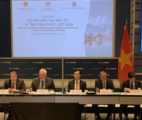Lors du colloque, Nguyên Van Tri, secrétaire adjoint du Comité provincial du Parti, également président du Comité populaire provincial, a présenté la situation socio-économique, les atouts et avantages, les opportunités d’investissement de Vinh Phuc. Selon lui, fin juillet 2019, Vinh Phuc comptait 362 projets d’investissement direct étranger de 17 pays et territoires, d’un capital enregistré total de plus de 4,8 milliards de dollars. Elle était ainsi au 19e rang national parmi les 63 villes et provinces du Vietnam en termes d’attraction des investissements étrangers. Actuellement, Vinh Phuc compte deux projets d’investisseurs américains dans l’industrie manufacturière, cumulant 15,6 millions de dollars.