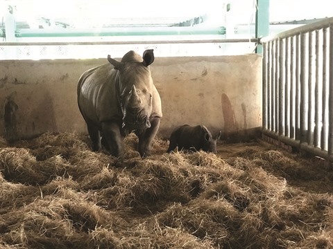 Fin avril 2019, le zoo Vinpearl Safari Phu Quôc s’anime. On afflue vers la zone reservée aux rhinocéros blancs (nom scientifique: Caretotherium simum, l’une des cinq espèces rares de rhinocéros encore en vie dans le monde) attendant avec patience un événement important: la naissance d’un bébé. C’est le deuxième nourrisson de cette espèce qui voit le jour ce mois-ci, dans l’enceinte du Centre de protection et de préservation des animaux sauvages installé sur l’île de Phu Quôc, province de Kiên Giang (Sud). Deux semaines auparavant, le zoo Vinpearl Safari Phu Quôc avait en effet fêté la naissance du premier bébé rhinocéros, du nom de Hakuna Matata (littéralement "Sans Souci" selon la langue d’Afrique occidentale).