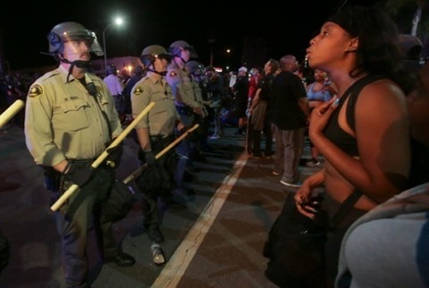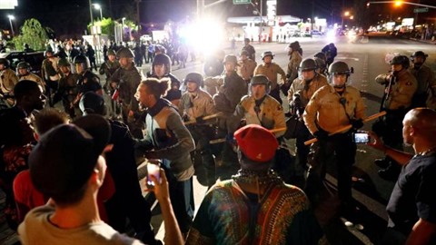 | Des manifestants face à la police à El Cajon, dans la banlieue de San Diego (Californie), le 28 septembre 2016. |