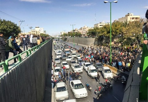 | Des manifestants bloquent une route à Ispahan en Iran, le 16 novembre |
