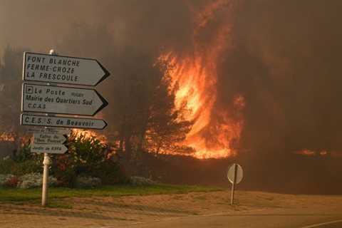 Le ministre arrivait de l'Hérault, un autre département plus à l'ouest, où un incendie a parcouru plus de 200 ha de garrigues. Quatre pompiers, dans un véhicule cerné par les flammes, y ont été blessés dans l'après-midi au cours de l'intervention, dont trois grièvement. Le feu a été circonscrit peu après 20h00 (18h00 GMT).