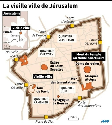 | Carte de la Vieille ville de Jérusalem. |