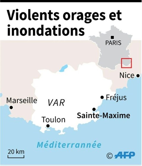 Vincent Morisse, maire de Sainte-Maxime, interrogé par l'AFP, a fait état également de dégâts matériels dans sa commune dans plusieurs secteurs où des cours d'eau ont débordé.