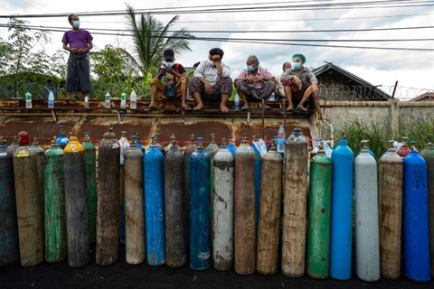 "La crise... est particulièrement meurtrière en raison de la méfiance omniprésente à l'égard de la junte militaire", a-t-il estimé. La Birmanie doit recevoir six millions de doses de vaccin de la Chine d'ici le mois prochain. Trop tard pour ceux qui se battent pour respirer. Dans une autre file d'attente à Rangoun, Aung Kyaw , 43 ans, espérait obtenir davantage d'oxygène pour sa femme.