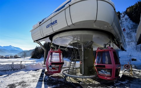 | Une télécabine arrêtée dans la station de ski de Cima Piazzi, en Lombardie, dans les Alpes italiennes, le 15 février. |