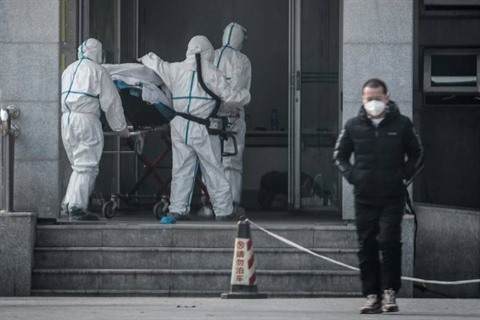 | Du personnel médical transportent un malade à l'hôpital Jinyintan de Wuhan, où des patients infectés par un mystérieux virus, analogue au Sras, sont traités. |