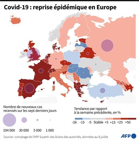 Le président Emmanuel Macron pourrait en annoncer lundi 12 juillet pour la France face aux assauts du variant Delta, en passe d'y être majoritaire, tandis que l'Argentine a prolongé les siennes jusqu'à début août et que le Pérou l'a fait pour l'état d'urgence, qui restera en vigueur un mois de plus, jusqu'à fin août.