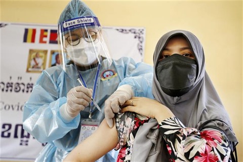 | Vaccination anti-COVID à Phnom Penh, le 2 juillet au Cambodge. |
