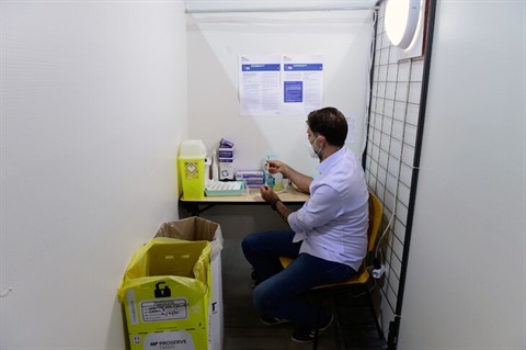 | Un volontaire prépare des doses du vaccin Pfizer/BioNTech contre le COVID-19 au Parc des expositions à Marseille, le 19 avril. |