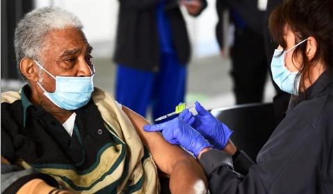 | Elton Jackson, 80 ans, reçoit une dose de vaccin anti-COVID à Pomona, en Californie, le 5 février. |