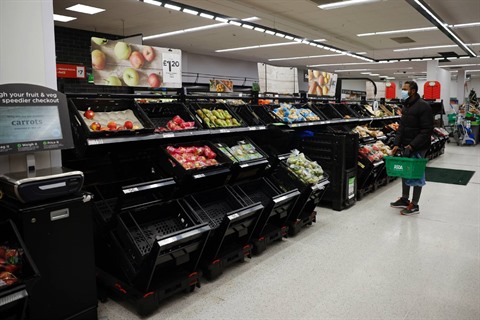 | Un client dans un supermarché devant des rayons presque vides à Walthamstow (nord-est de Londres), le 22 décembre. |