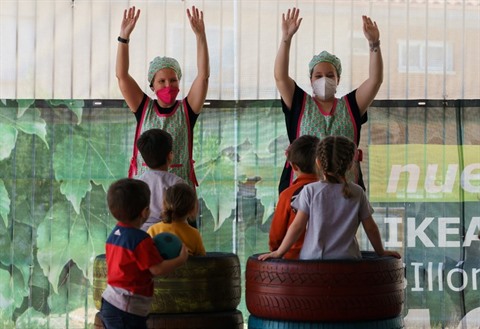 | Des enseignants dans une école maternelle de Valladolid (Espagne), le 10 juin. |