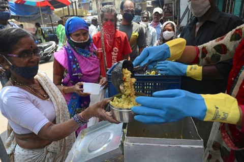 | Distribution de nourriture par l'ONG KhaanaChahiye à Bombay, le 15 avril. |