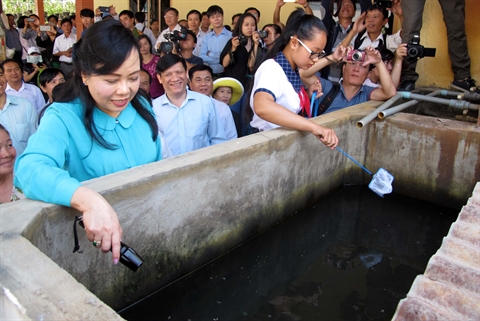 | La ministre de la Santé, Nguyên Thi Kim Tiên (gauche), lors de la campagne contre le virus Zika et la dengue, le 5 mars à Hô Chi Minh-Ville. |