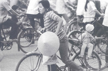 Elle a un joli nom, Hoàng Oanh, Loriot Jaune. Elle est tout à sa besogne quand je viens la chercher au «Mâm non» (littéralement Jeunes pousses), une école maternelle de Hanoi. Une foule de gosses l’entourent, portant un drapeau rouge à étoile d’or et exécutant la «Danse des étoiles». Une douzaine d’élèves institutrices, venues faire leur stage sous sa direction, la remplacent pour lui permettre de me recevoir.