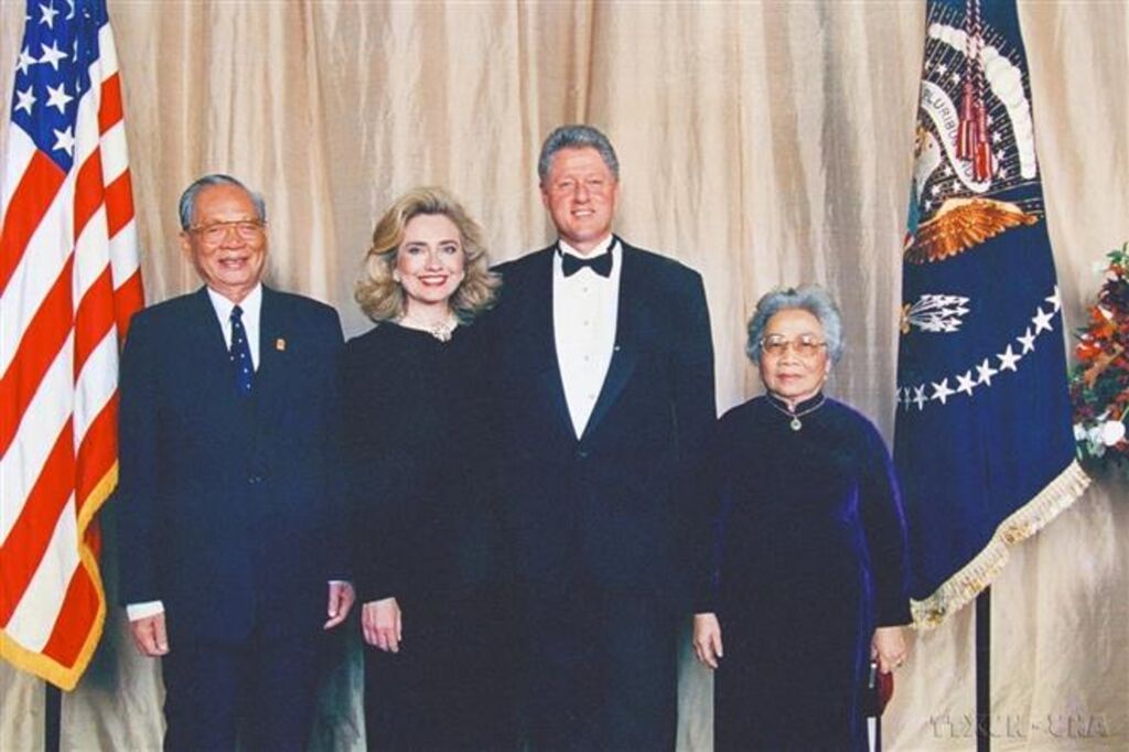 | Le président vietnamien Lê Duc Anh (gauche) et le président américain Bill Clinton (2e, droite) à New York, en octobre 1995, lors des célébrations du 50e anniversaire de l’ONU, marquant la première visite d’un chef d’État vietnamien aux États-Unis. |