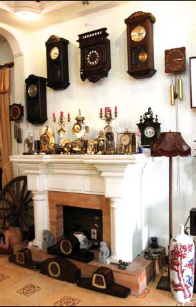 | Une partie de la collection des milliers de pendules du metteur en scène Lê Hùng. |