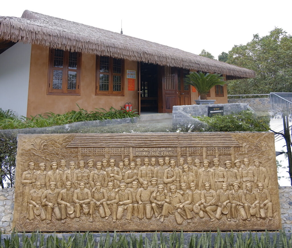 Reconstitué d’après les témoignages des anciens, le site Huỳnh Thúc Kháng comprend deux zones : une zone de reconstitution d’une salle de classe avec un espace d’exposition dédié à l’École de journalisme Huỳnh Thúc Kháng et une autre inspirée de la maison sur pilotis du Comité central du Việt Minh.