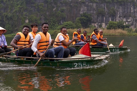 Durant l’après-midi, le groupe s’est baladé dans la vallée de Tràng An pour observer les formations karstiques. Des éléments sur l’histoire et la création de ce patrimoine mondial de l’UNESCO leur ont été exposé. Après la balade sur la rivière Sào Khê, les étudiants de l’IFI ont également exploré les plateaux de cinéma où a été tourné le film Kong: Skull Island (2017).