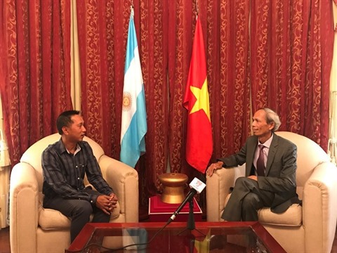 | L'ambassadeur du Vietnam en Argentine, Dang Xuan Dung (droite), accorde une interview au correspondant de la VNA à Buenos Aires à la veille de la visite au Vietnam du président argentin Mauricio Macri. |