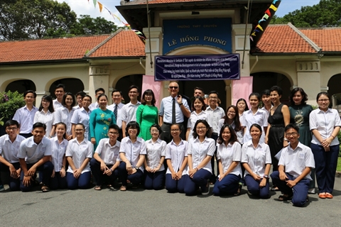 | André Vallini visite le 7 septembre le lycée Lê Hông Phong, à Hô Chi Minh-Ville. |