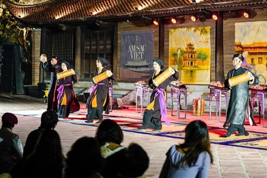À travers la musique traditionnelle et les arts populaires, "Âm sac Viêt" a enrichi l’expérience du public et approfondi la compréhension des valeurs éducatives et culturelles du site. Les visiteurs ont été guidés à travers des espaces emblématiques tels que le pavillon Khuê Van Cac, le puits Thiên Quang et la cour de Bai Duong, magnifiés par un éclairage de lanternes traditionnelles.