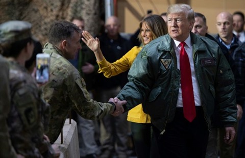 | Le président américain Donald Trump (droite) et la Première dame Melania sur la base aérienne d'Al-Assad, en Irak, le 26 décembre. |