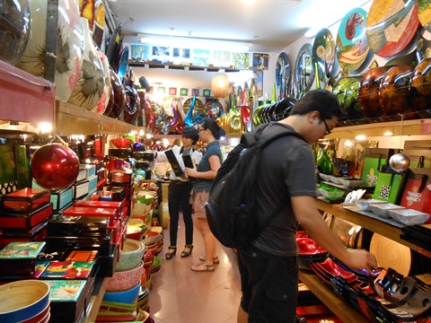 | Une boutique de produits artisanaux dans le Vieux quartier de Hanoï. |