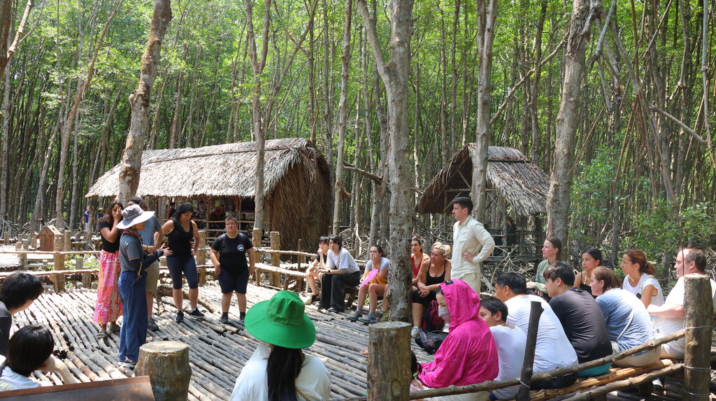 | Des journalistes prennent une photo souvenir dans la forêt de Rung Sac, à Hô Chi Minh-Ville. |