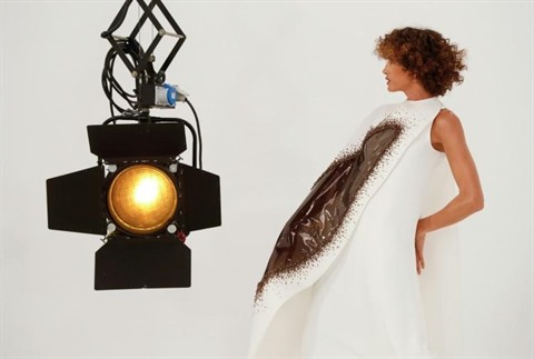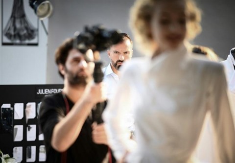 | Au tournage du film pour présenter la collection haute couture de Julien Fourné, à Paris, le 30 juin 2020. |