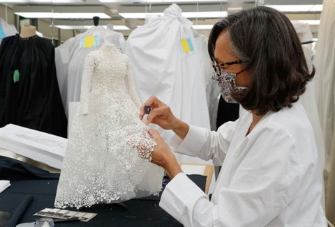 | Fabrication d'une robe miniature de la collection Dior, à l'taelier de la maison de Haute couture le 4 juillet 2020. |