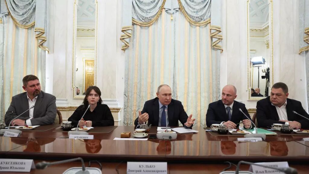 | Le président russe Vladimir Poutine (centre) a rencontré, le 13 juin, des correspondants à Moscou. |