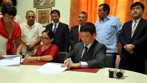| Signature d'un accord de coopération dans l'imprimerie et la publication de la revue vietnamienne en espagnol en Amérique latine entre la Revue "Vietnam illustré" et la Prensa Latina. |