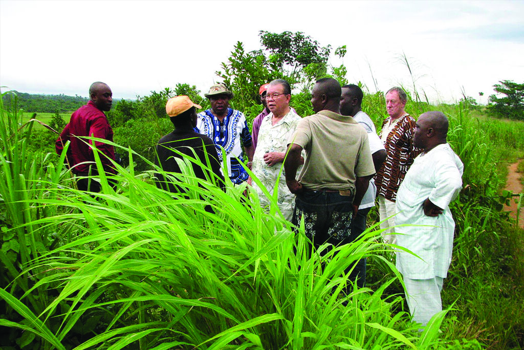 | Le Pr. Vo Tòng Xuân (portant des lunettes) en mission en Afrique. |