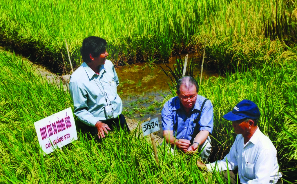 Si le “Héros du Travail” Hô Quang Cua est fréquemment reconnu comme le “père” du ST25, il est crucial de mettre en lumière son mentor, le Pr. Vo Tòng Xuân. Ce dernier a joué un rôle important dans la propagation des variétés de riz IR36 et IR64 dans le delta du Mékong, autrefois fréquemment touchées par les ravageurs et les épiphyties. De plus, il a collaboré étroitement avec les agriculteurs pour mettre en œuvre des techniques de greffage de pointe, améliorant ainsi la résistance des cultures.