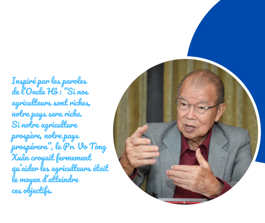 Inspiré par les paroles de l’Oncle Hô : “Si nos agriculteurs sont riches, notre pays sera riche. Si notre agriculture prospère, notre pays prospérera”, le Pr. Xuân croyait fermement qu’aider les agriculteurs était le moyen d’atteindre ces objectifs.