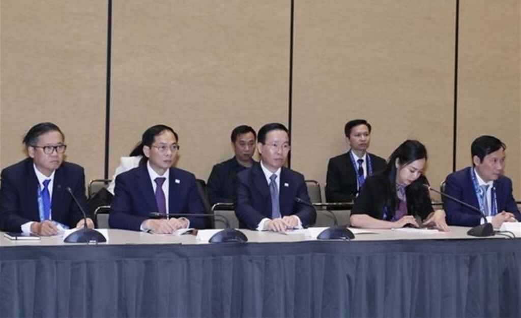 | Lors de l'échange entre le président vietnamien Vo Van Thuong (4e à gauche) et la Coalition des entreprises États-Unis - APEC, le 15 novembre. |