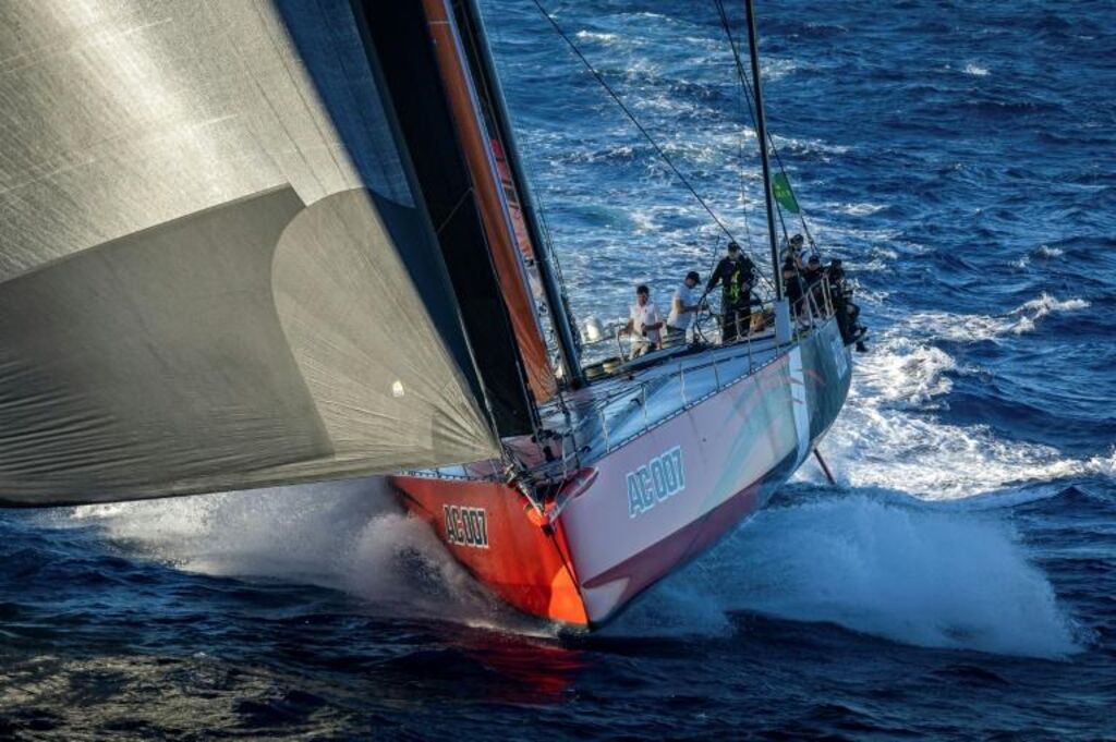 | Le yacht Andoo Comanche se dirige vers Hobart lors de la course Sydney-Hobart, le 26 décembre. |