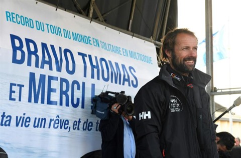 | Le skipper Thomas Coville accueilli en héros à Brest, le 26 décembre. |
