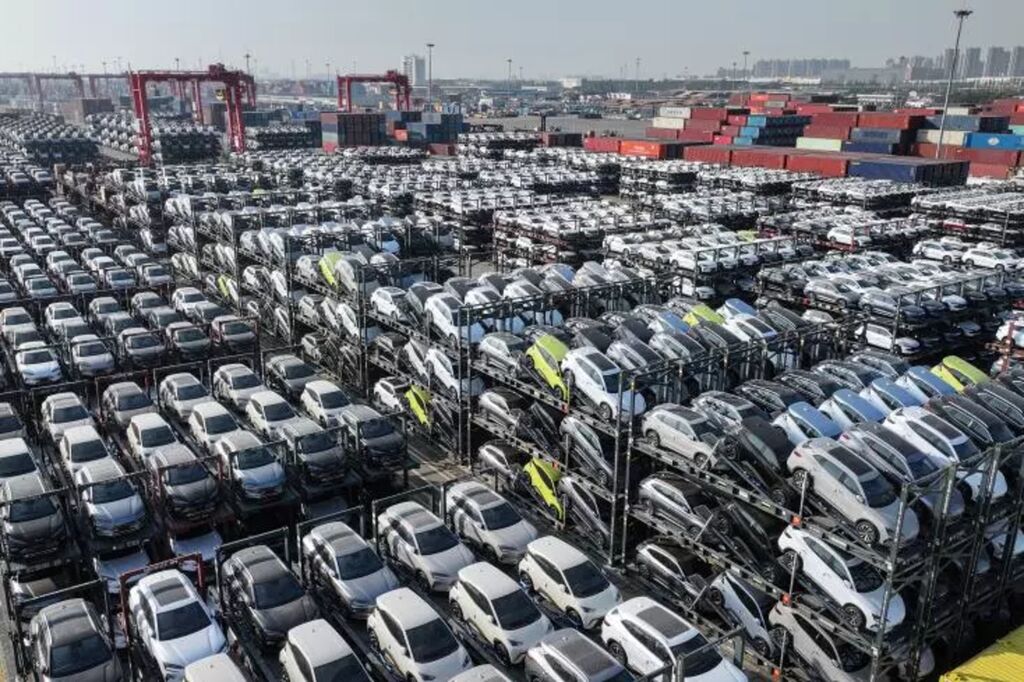 | Des voitures électriques en attente d'exportation au port de Taicang à Suzhou, dans la province du Jiangsu, en Chine, le 8 avril. |