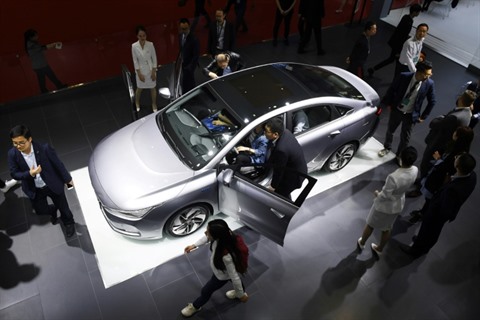 La voiture électrique Geometry A, du constructeur chinois Geely, au Salon de l'automobile de Shanghai en 2019. Photo : AFP/VNA/CVN |