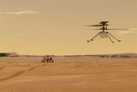 Une photo accompagnant le tweet montrait Perseverance s'éloignant de l'hélicoptère. Il doit absolument lui dégager la vue en moins de 25 heures, car l'hélicoptère aura besoin du soleil pour alimenter ses panneaux solaires en énergie, et ainsi être capable de survivre en se réchauffant pendant les glaciales nuits martiennes.